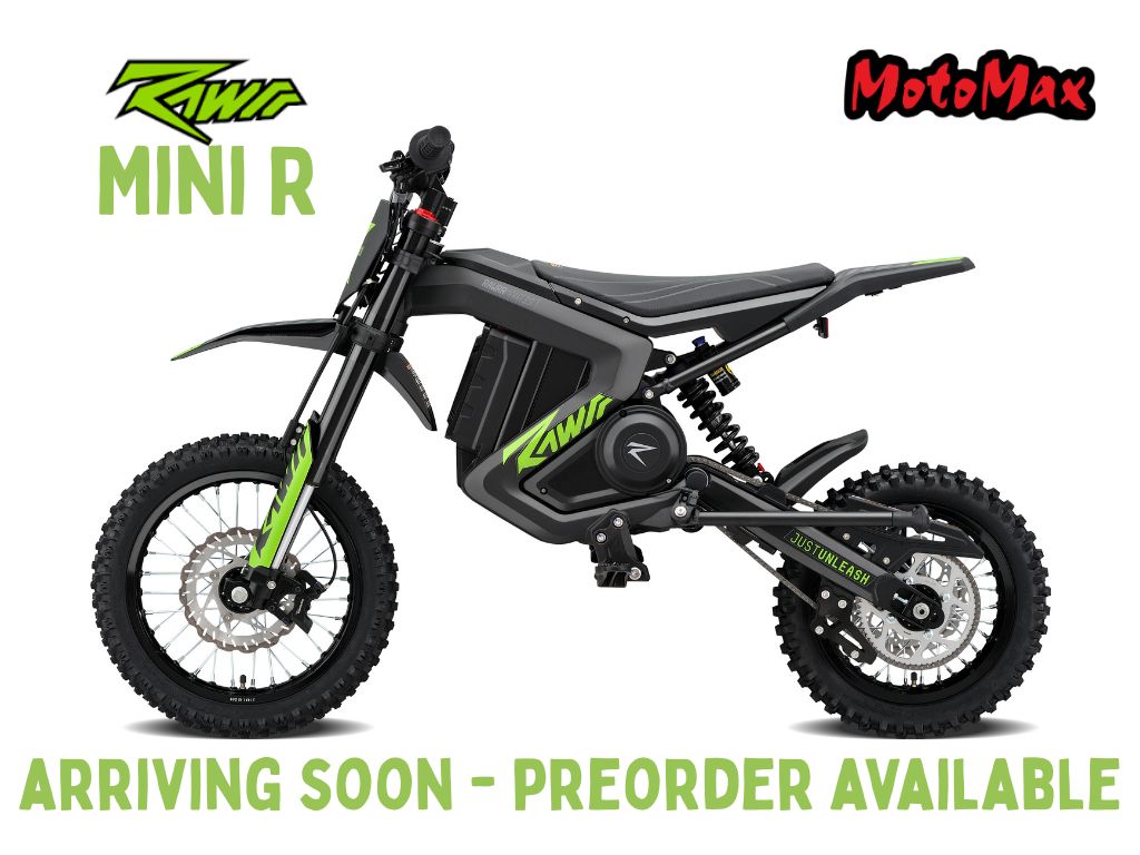 The Rawrr Mantis Mini R is a compact, high-performance electric mini bike designed for riders seeking fun, instant torque, and agile handling in a lightweight package. Engineered with durability and responsiveness in mind, the Mini R delivers smooth power delivery and confident acceleration, making it ideal for yard rides, neighborhood cruising, or introducing yourself to electric performance bikes. Its rugged construction and efficient battery system make it easy to hop on and ride, while the playful yet capable design ensures a fun experience for both beginners and experienced riders.